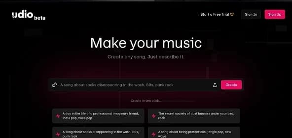 Udio AI is an AI-powered music generator tool that allows users to create music of different genres and styles in a text-to-audio platform. You can create both songs and instrumental tracks by describing your mood in words or lyrics to AI. Artificial intelligence, with its advanced algorithm, understands your mood, such as relaxed, upbeat, or lofi, and generates music.